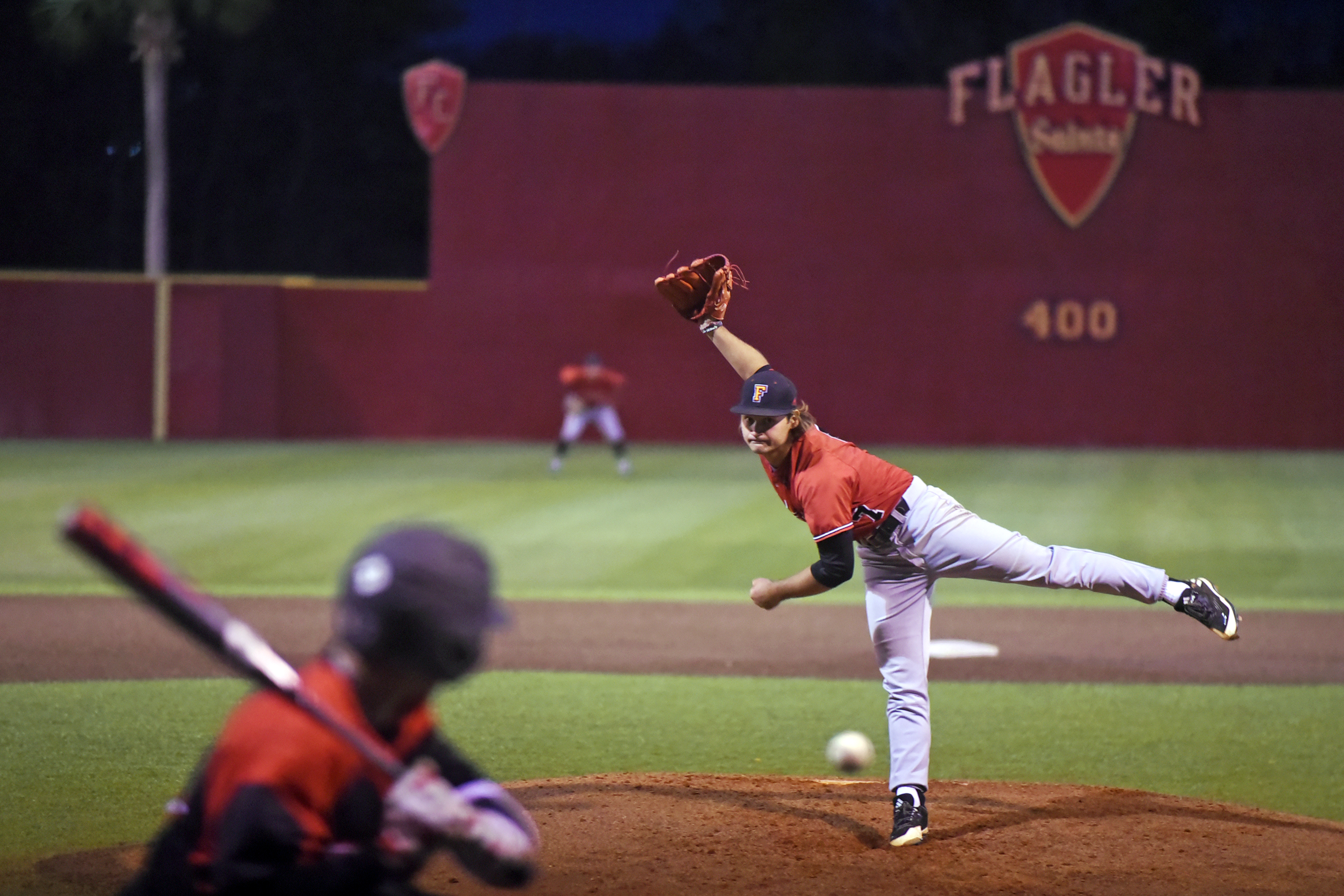 Flagler senior Michael Maiocco pitches in a game against University of Tampa at Drysdale Field on Friday, March 3, 2017. (Christina Kelso/ The St. Augustine Record)