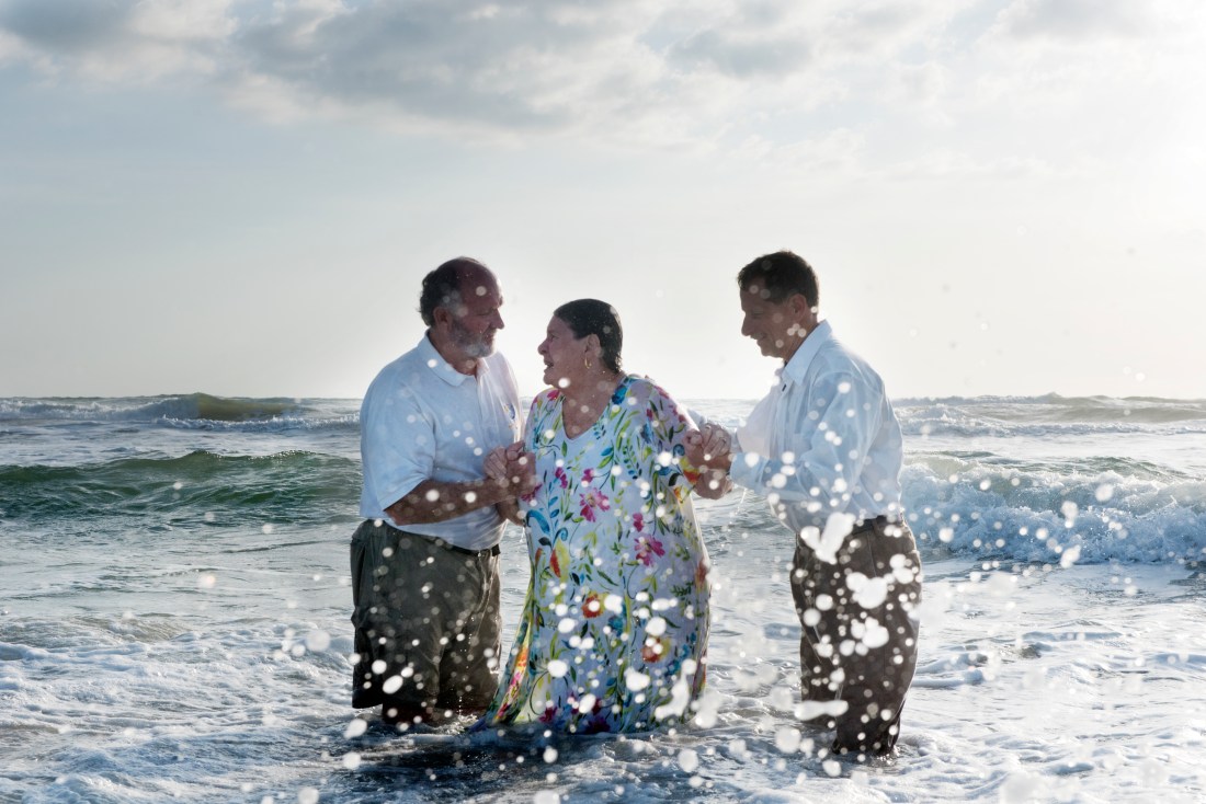 Bonnie Dean is baptized by David Beachamp and Greg Clements of Crescent Beach Baptist Church during the church’s annual Easter sunrise service on Sunday, April 16, 2017. (Christina Kelso/ The St. Augustine Record)