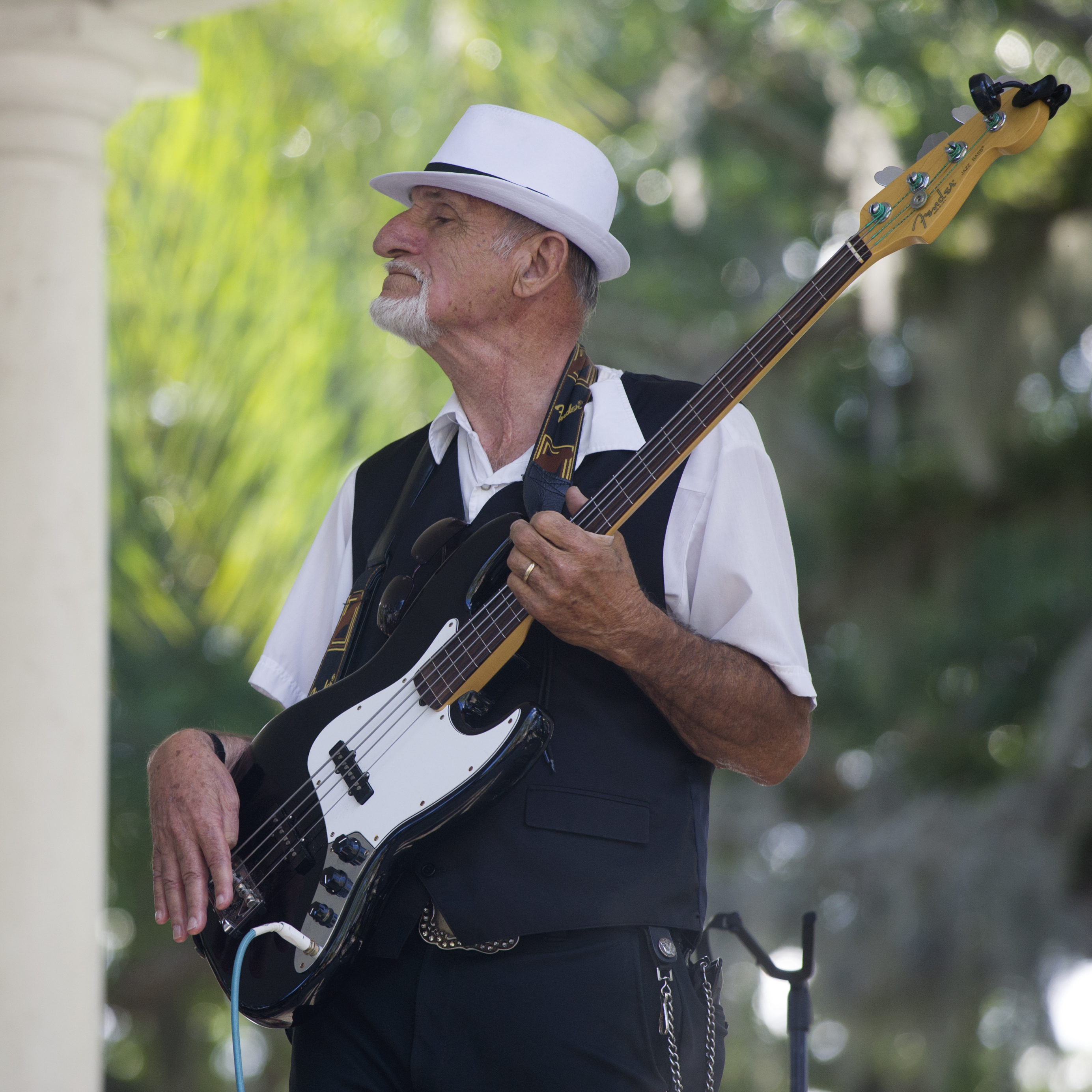 Luis Mario Peral and His Rumba Kings bassist Tony McLeod, plays with the band at the Plaza de la Constitucion on Friday, May 5, 2017 in a free Cinco de Mayo concert kicking off the first night of St. Augustine’s Romanza Festivale of the Arts. The festival continues through May 14, and includes a series of music, dance, art and cultural events throughout the city. (Christina Kelso/ The St. Augustine Record)