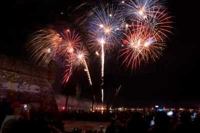 Fireworks burst overhead as thousands pack along a crowded downtown bayfront to view the city’s annual “Fireworks Over The Matanzas” Fourth of July display on Tuesday, July 4, 2017. (Christina Kelso/ The St. Augustine Record)