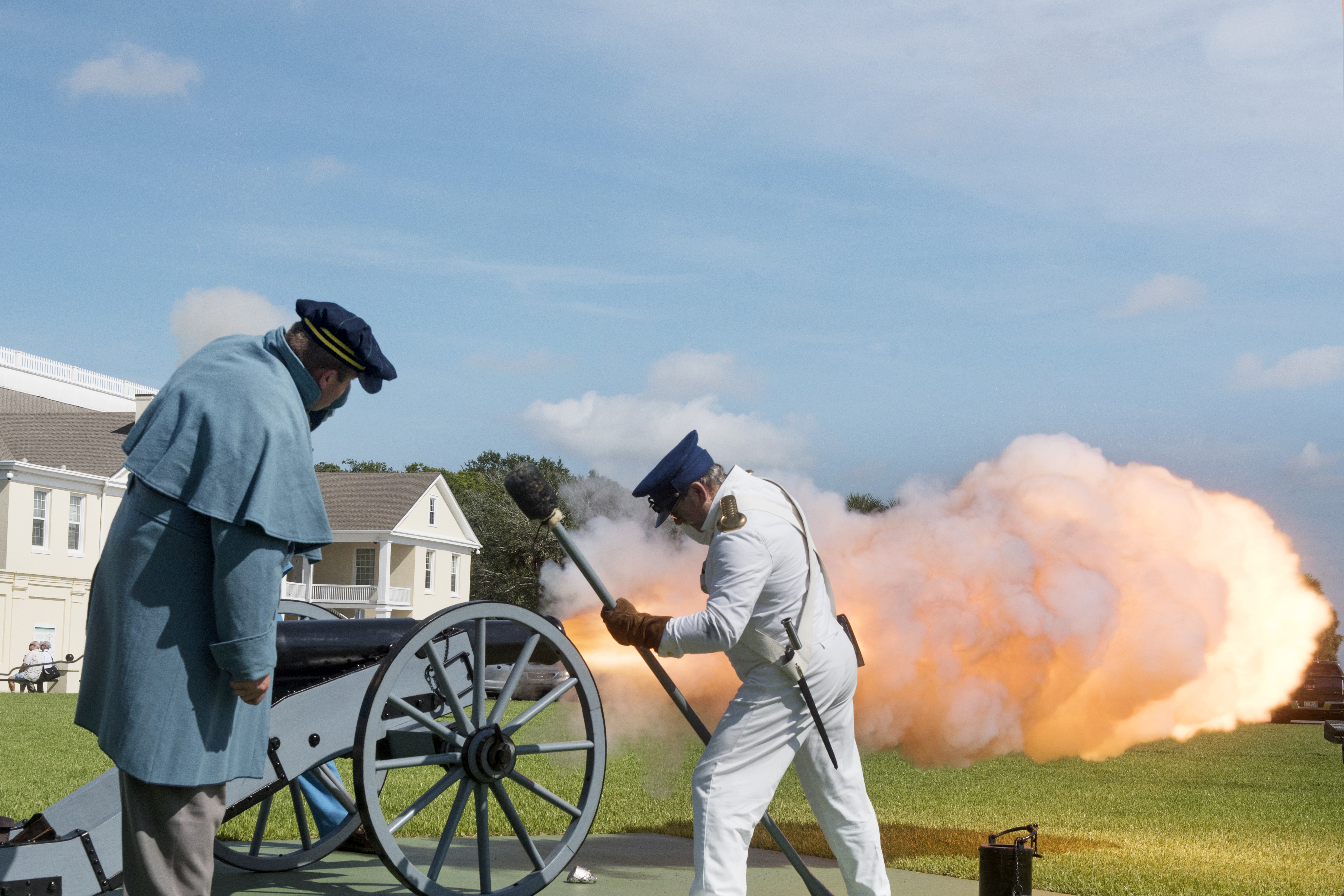 Living history re-enactors fire a canon salute outside of St. Francis Barracks on Saturday, August 12, 2017, at the start of the tenth annual commemoration of the 1842 parade and ceremony that closed the Second Seminole War and honored those who died in the bloody seven-year conflict on Saturday, August 12, 2017. (Christina Kelso/ The St. Augustine Record)