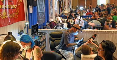 The mechanical hum tattoo needles echoes throughout the St. Johns County Convention Center at World Golf Village on Saturday, August 26, 2017 as artists from across the country work and compete in the second day of the 2017 Jacksonville Tattoo Convention. (Christina Kelso/ The St. Augustine Record)