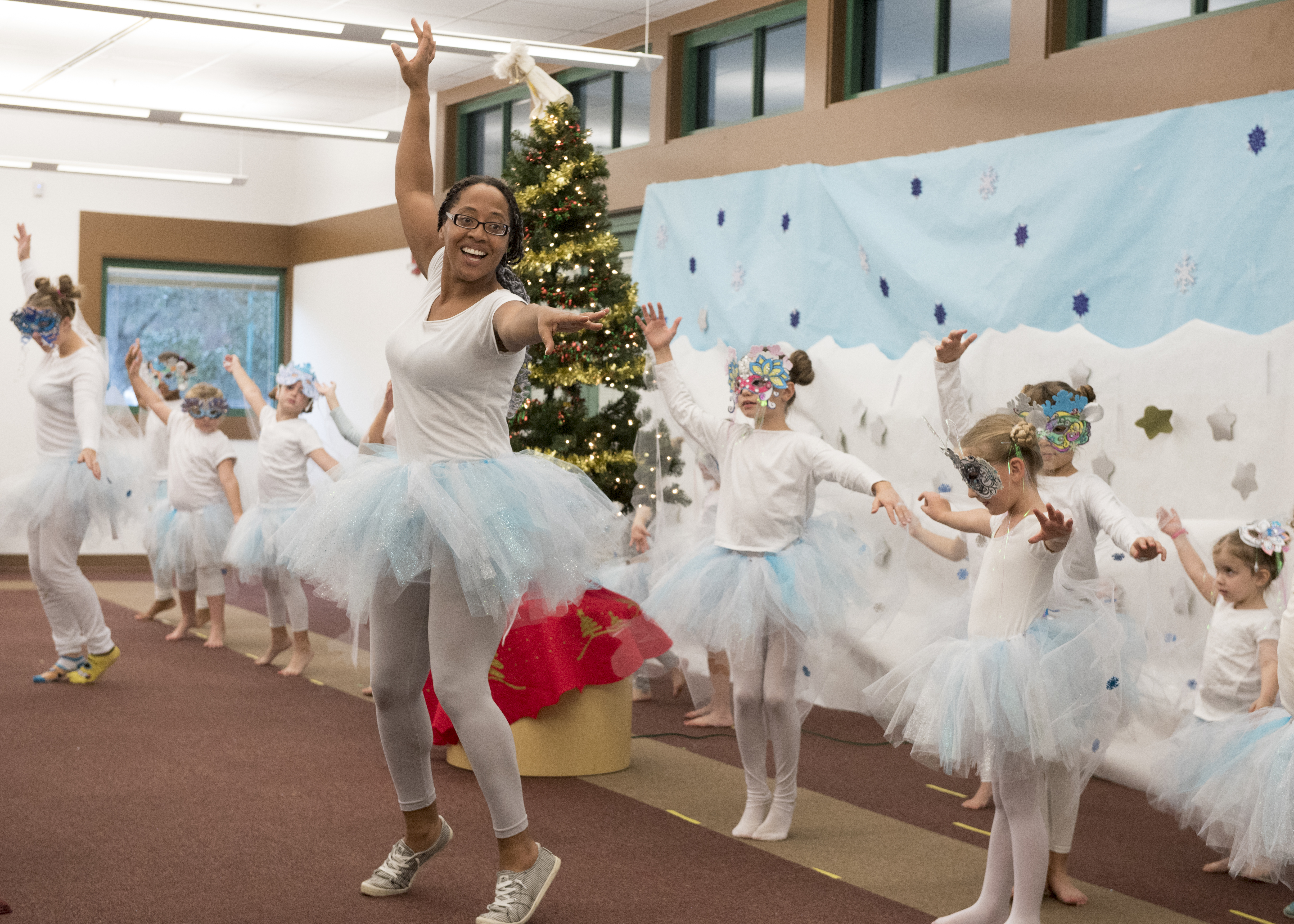 St. Johns County Public Library Southeast Branch youth services assistant Akilah Pickett leads young dancers in the library’s Dance of the Pixies recital on Wednesday, December 6, 2017. (Christina Kelso/ The St. Augustine Record)