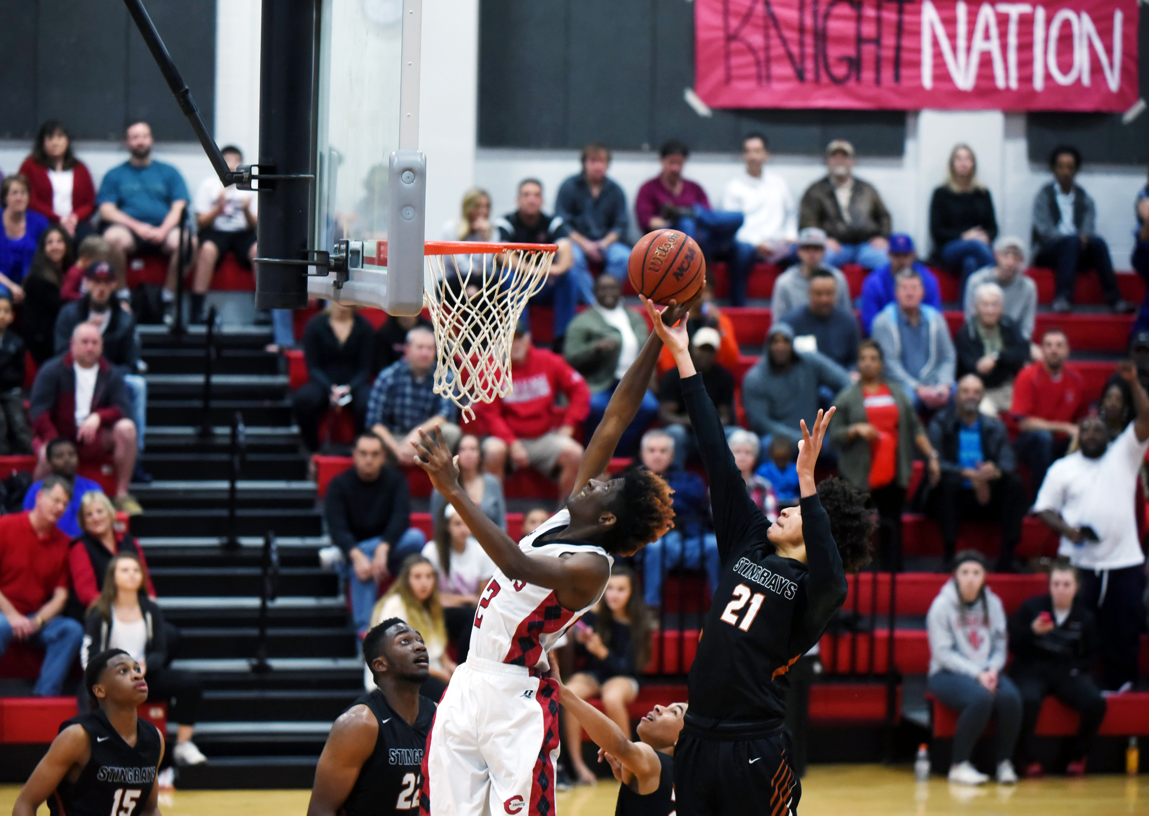 Creekside’s Bobby Kasparzak attempts to dunk the ball in a home playoff game against Atlantic Coast on Thursday, February 16, 2017. (Christina Kelso/ The St. Augustine Record)