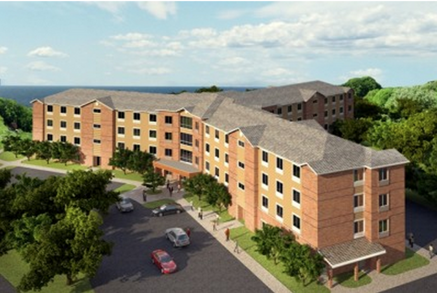 The building will include a residential life satellite office, academic classroom space, a lobby with a fireplace and conversation nooks, a multi-purpose room, laundry facilities, and high-tech amenities such as fiber optic communications, CAT-6 wiring, and cell phone range extenders, according to the press release.
